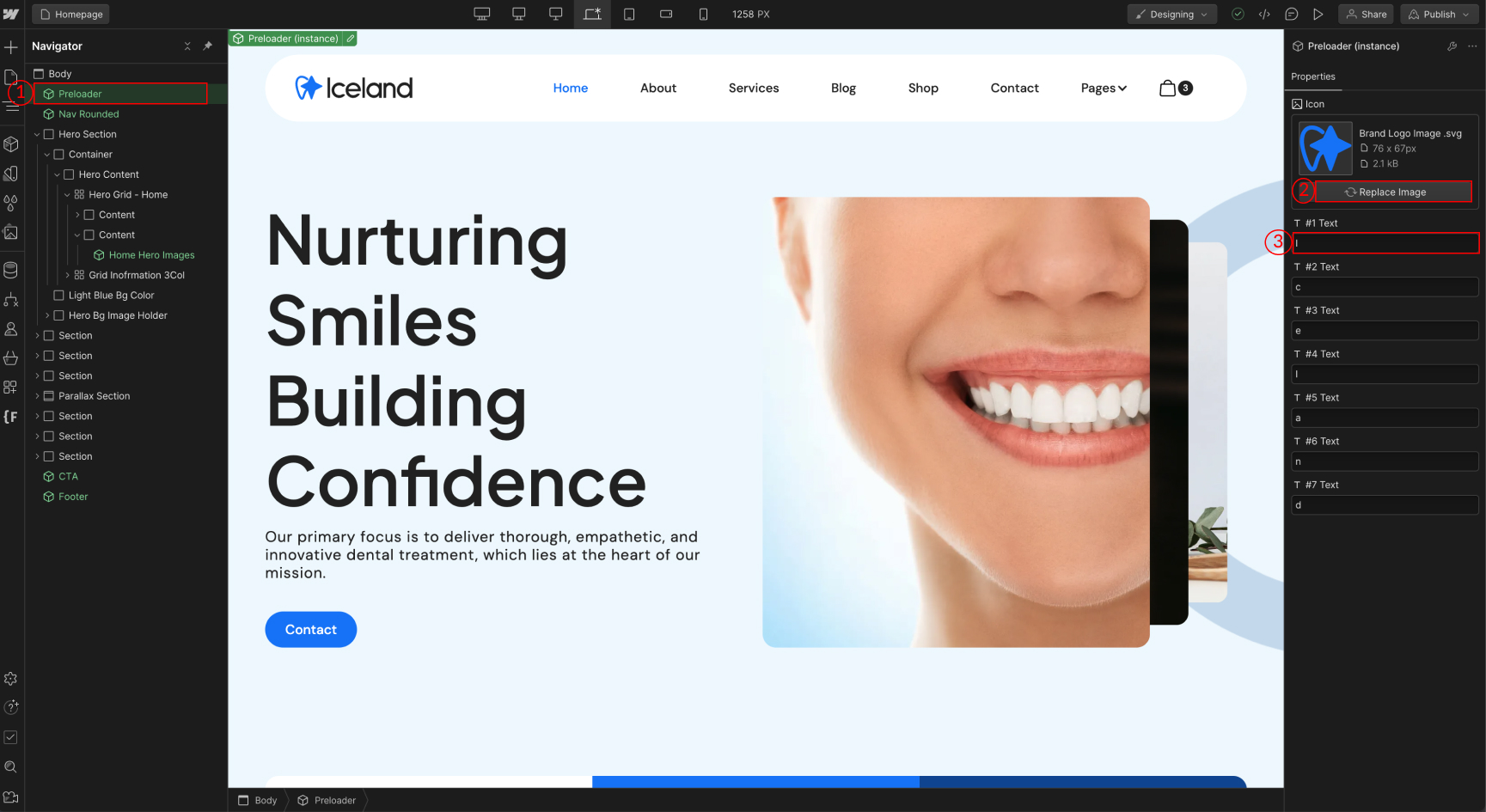 1. Click the Preloader component